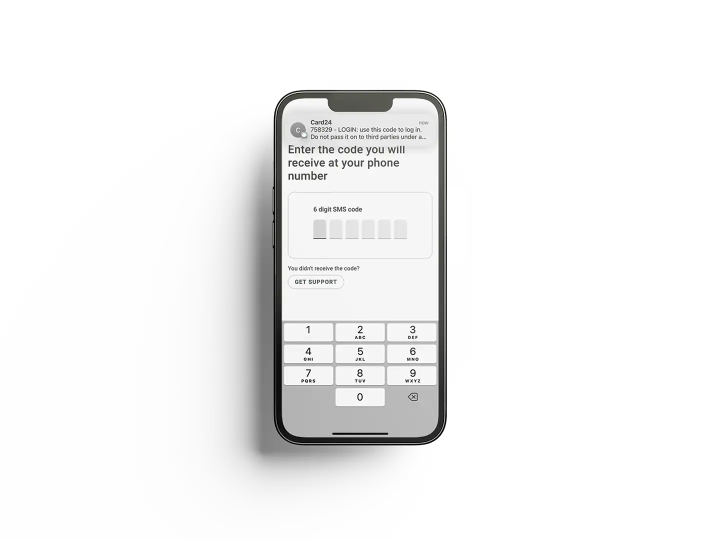 - Next, click on the link sent to you by e-mail and select «Continue» in the card24 app.